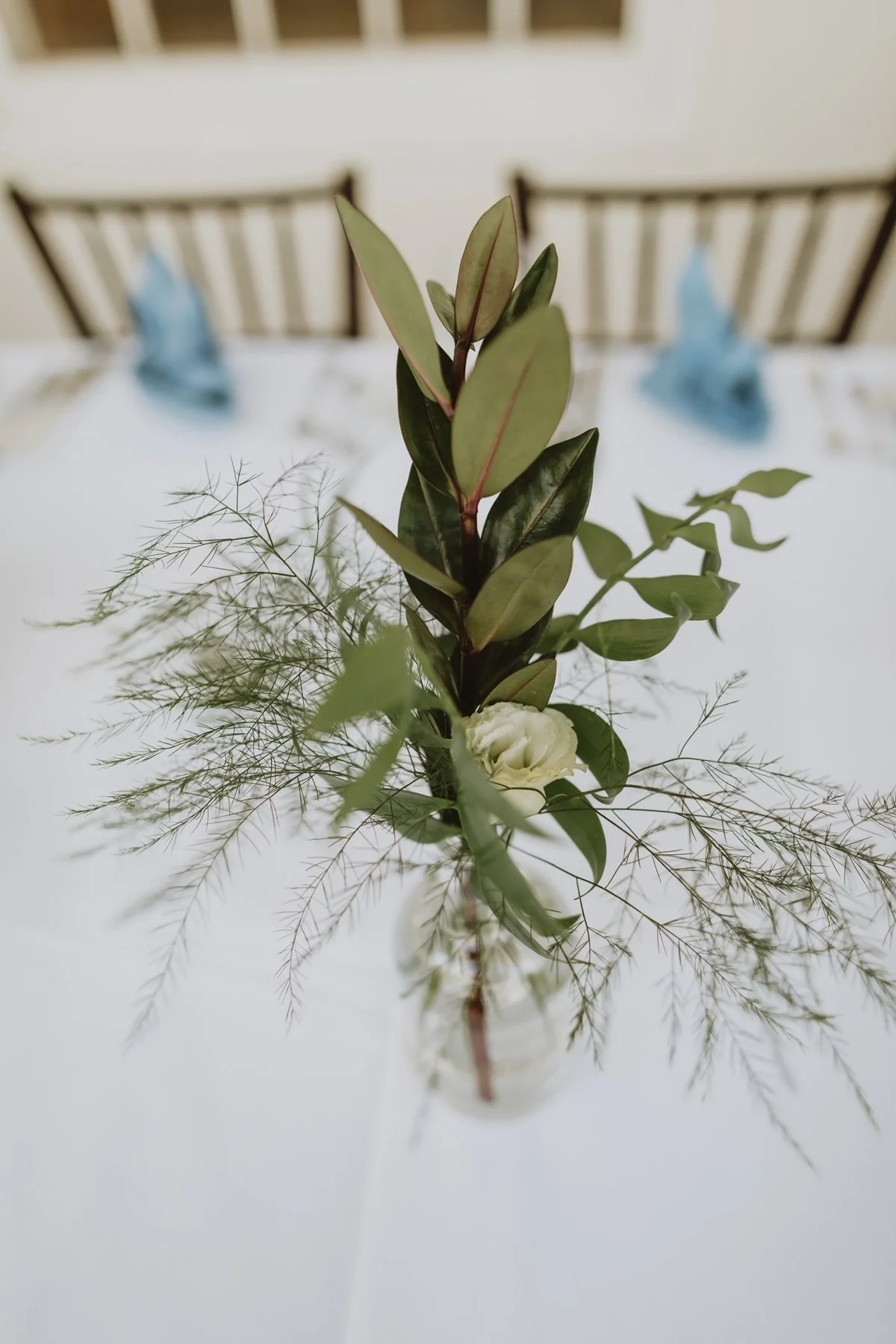 A lush arrangement of greenery that is perfect for round guest tables, or adding to a corner of a welcome sign.