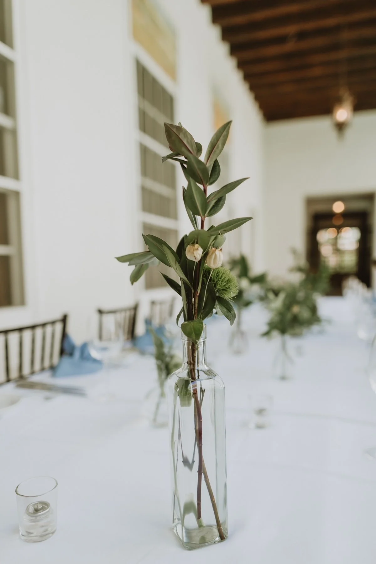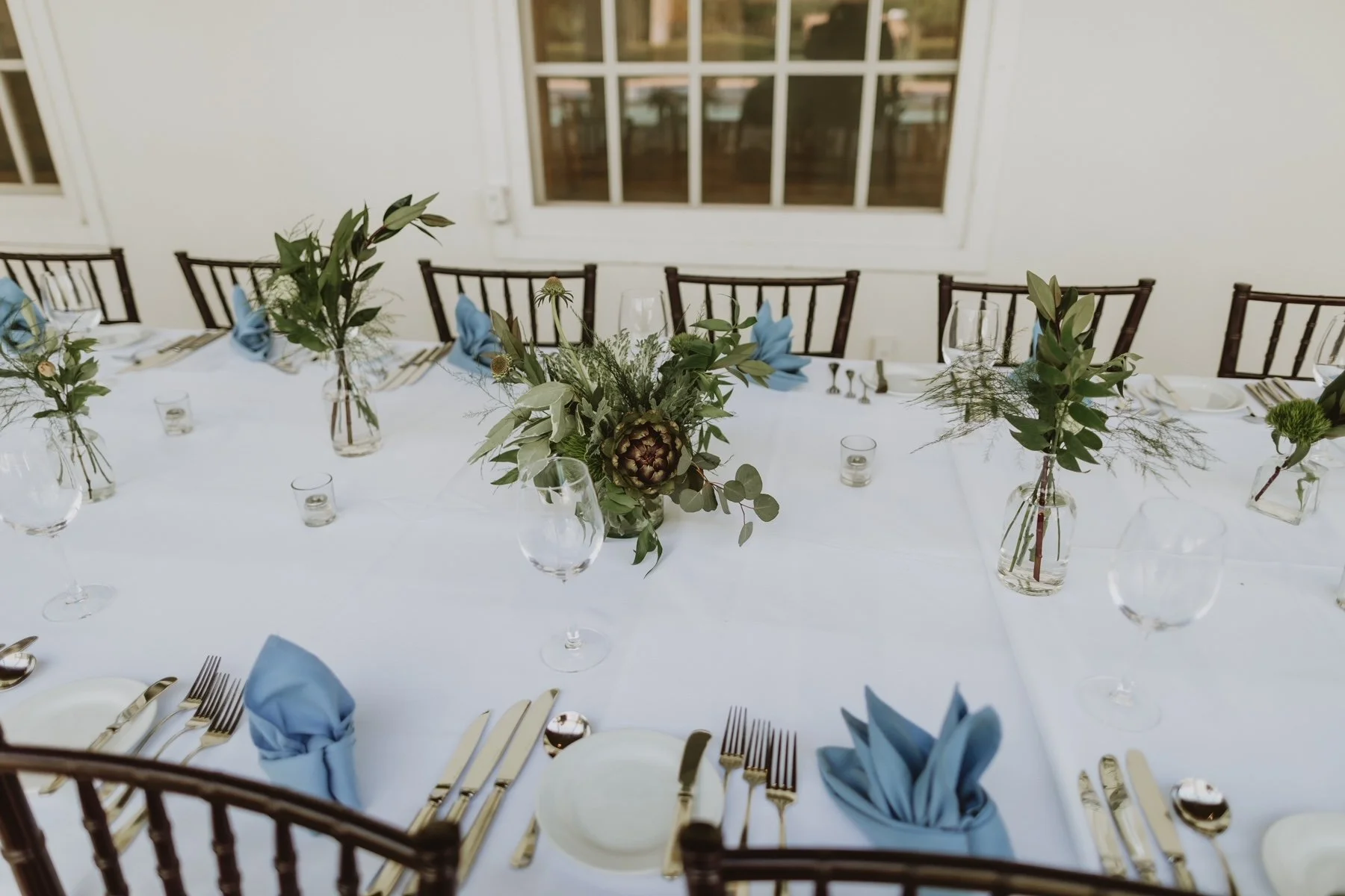 Our bud vases look simple and elegant grouped on a charger or scattered down long tables.