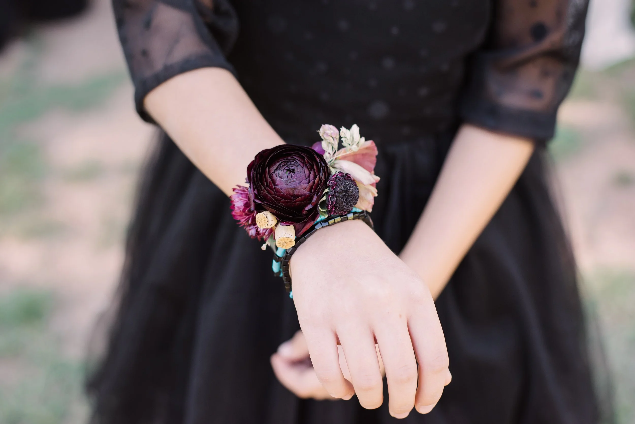 Like a miniature bouquet for your wrist! Crafted on a modern metallic cuff, you have the choice to customize this piece by selecting from gold, silver, or bronze/rose gold. Perfect for any special wedding attendant and traditionally worn by mothers and grandmothers, these corsages offer a personalized and coordinated touch for the guest you wish to honor at your event.