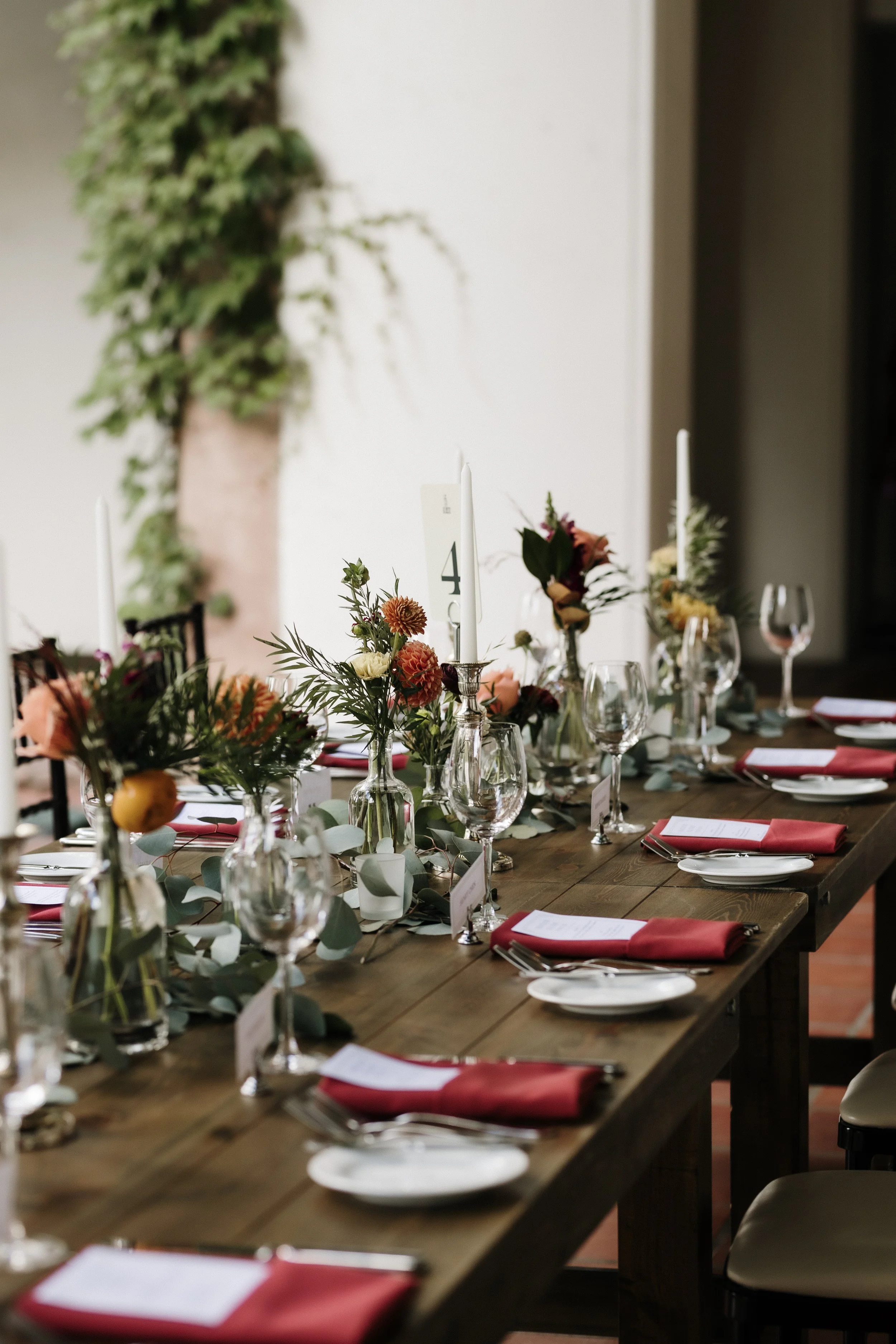 Our bud vases look terrific grouped on a charger, or scattered down long tables.