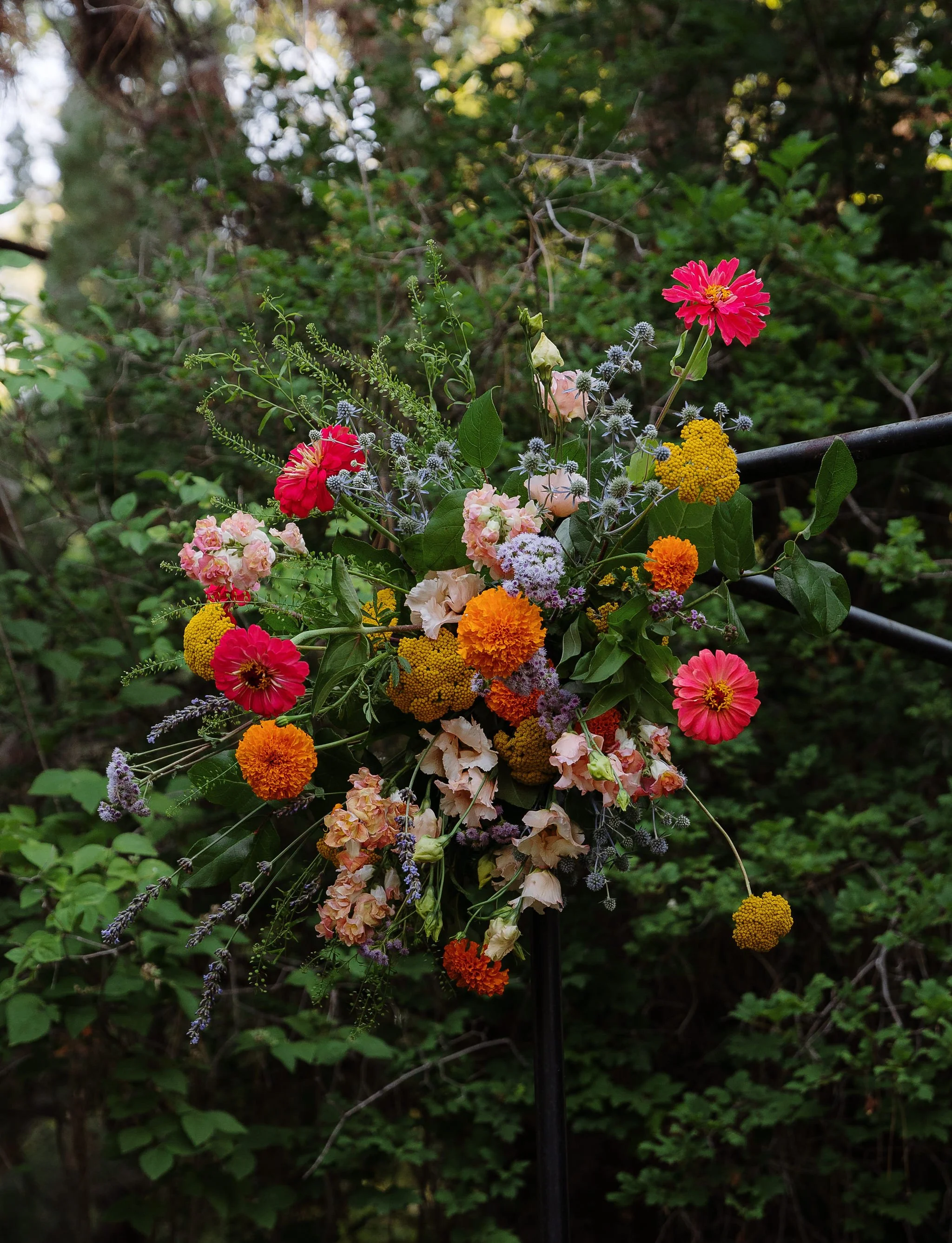 A magnificent spray of premium blooms and greenery that can be attached to a wedding arch, gate, chuppah, or other architectural features. We provide zip ties and instructions that allow you to attach yourself if you opt for delivery or setup.
